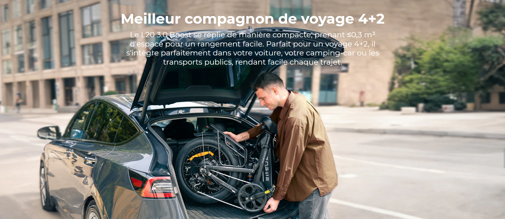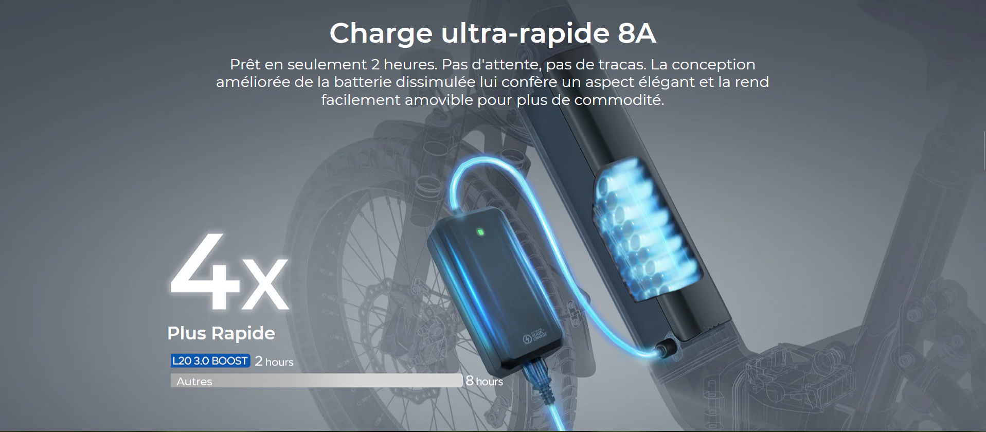 Roues et pneus Équipé de pneus hybrides urbains de 20" × 3,0" avec une couche anti-perforation de 3 mm.
