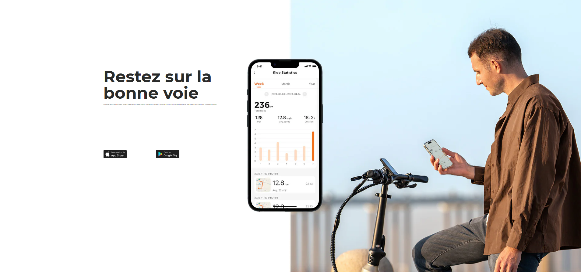 Affichage et connectivité Écran couleur LED de 3,5 pouces, conçu par ENGWE, positionné au centre du guidon, avec connectivité Bluetooth pour une utilisation avec l’application mobile ENGWE.